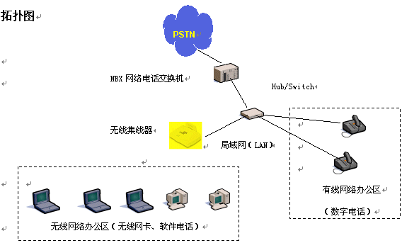 隨著信息時代的來臨,電話、電腦成了辦公領域的重要工具,人們在辦公室通過計算機網(wǎng)絡共享數(shù)據(jù)資源、傳遞數(shù)據(jù)信息,彼此間通過電話言語溝通。在人們享受到高科技帶來的高效率的同時,也感到一些不便,例如計算機網(wǎng)絡、電話網(wǎng)都需要單獨鋪設專用的線路,線路的變更往往是讓人心煩的事情。隨著各公司推出無線局域網(wǎng)絡解決方案(AirConnect)和NBX網(wǎng)絡電話交換機平臺的推出,通過無線局域網(wǎng)絡技術(shù),語音、數(shù)據(jù)兩網(wǎng)合一技術(shù),將電腦、電話機合二為一,同時從線路的束縛中解放出來。人們再也不用擔心布線問題,可以隨處移動辦公,享受無線網(wǎng)絡、無線話音,大大提高人們的辦公效率。