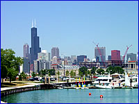 芝加哥并不是一個旅游城市,人口也只有200多萬。如果說觀光景點(diǎn)的話,就只有位于城市中心由近40多座高樓組成的摩天大樓群,高聳入云的高樓一座連著一座,使得芝加哥整個城市看上去象是鋼筋水泥構(gòu)成的森林,充滿了大都市的氣魄。其中的西爾斯大廈(Sears Tower),在紐約的世貿(mào)大廈毀于恐怖事件之后,成為全美最高建筑。
