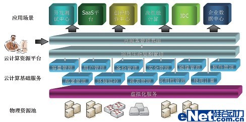 企業(yè)云通過采用硬件設(shè)備虛擬化、軟件版本標準化、系統(tǒng)管理自動化和服務(wù)流程一體化等手段,把傳統(tǒng)的數(shù)據(jù)中心建設(shè)成為一個以服務(wù)為中心的運行平臺,資源的使用方式從專有獨占方式轉(zhuǎn)變成完全共享方式,運行環(huán)境可以自動部署和調(diào)整資源分配,實現(xiàn)資源隨需掌控,從而幫助客戶建立一個基于業(yè)務(wù)的資源共享、服務(wù)集中和自動化的開放數(shù)據(jù)中心。