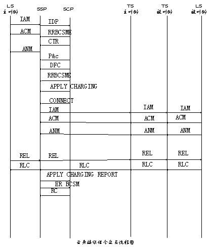 ⑥ SSP按照SCP返回的被叫號碼及路由信息,與被叫側(cè)TS、LS局進(jìn)行IAM、ACM和ANM(應(yīng)答消息)等ISUP信令交互;