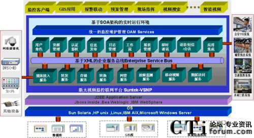 新太視頻監(jiān)控聯(lián)網(wǎng)管理平臺(tái)采用J2EE開(kāi)放式架構(gòu),可以在WINDOWS/LINUX操作系統(tǒng)下運(yùn)行,具有強(qiáng)大的伸縮性。