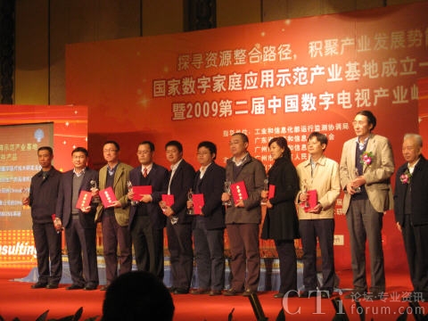 CTI論壇(ctiforum)01月04日消息(記者 張塵):2009年12月22日,國家數(shù)字家庭應用示范產業(yè)基地成立一周年暨2009年第二屆中國數(shù)字電視產業(yè)峰會系列活動,在番禺區(qū)長隆酒店隆重舉行。此次系列活動包括國家數(shù)字家庭應用示范產業(yè)基地優(yōu)秀企業(yè)及個人頒獎儀式、峰會系列活動啟動儀式、2009年第二屆中國數(shù)字電視產業(yè)峰會暨內容供應商大會和數(shù)字家庭人文論壇等。在其中舉行的頒獎儀式上,新太科技股份有限公司(下稱新太科技)共獲得“數(shù)字家庭研發(fā)園優(yōu)秀企業(yè)獎”、“數(shù)字家庭研發(fā)園優(yōu)秀軟硬件產品獎”和“國家數(shù)字家庭應用示范產業(yè)基地優(yōu)秀個人獎”三項大獎。