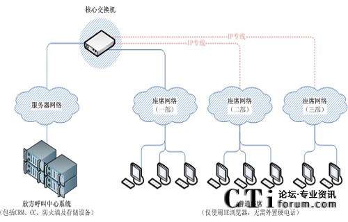 河北博岳呼叫中心職場分為1個中心職場和2個分部,之間相隔幾公里至幾十公里,以VoIP通路連接,所有職場統(tǒng)一管理,最大程度的適應(yīng)了呼叫中心建設(shè)的個性化需求,同時,這種布局還大大降低了租用場地的成本,也方便話務(wù)員就近上班。