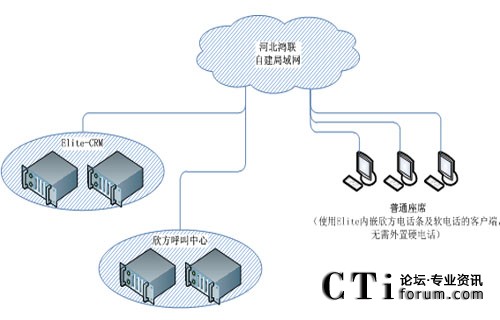 除了河北博岳,北京欣方也為河北鴻聯(lián)公司提供了用于河北移動同樣增值電銷業(yè)務(wù)的呼叫中心平臺,同河北博岳的呼叫中心系統(tǒng)不同,該平臺不包含欣方CRM系統(tǒng),直接采用了河北鴻聯(lián)采購的Elite-CRM系統(tǒng),由欣方呼叫中心平臺與該系統(tǒng)對接使用。