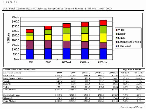 電信市場(chǎng)不是一個(gè)孤立的市場(chǎng),而是由電信服務(wù)和電信制造兩個(gè)緊密相連的市場(chǎng)組成的。電信制造業(yè)不斷進(jìn)行研發(fā)創(chuàng)新,為電信服務(wù)業(yè)提供新的業(yè)務(wù);而電信服務(wù)也利用電信制造業(yè)的新技術(shù),并把這些服務(wù)最終提供給商業(yè)和普通消費(fèi)者兩類用戶?梢哉f(shuō),電信制造業(yè)的發(fā)展在很大程度上是由電信服務(wù)業(yè)決定的。要了解電信制造市場(chǎng)的將來(lái),不得不從電信服務(wù)市場(chǎng)的變化談起。