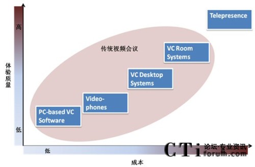 & Sullivan 咨詢顧問(wèn)楊梅從體驗(yàn)質(zhì)量及成本兩個(gè)緯度對(duì)目前市場(chǎng)上的視頻會(huì)議系統(tǒng)產(chǎn)品進(jìn)行了深入比較,發(fā)現(xiàn)網(wǎng)真在體驗(yàn)質(zhì)量上要明顯高于其他產(chǎn)品,然而其在部署成本上同樣要高于其它產(chǎn)品,這也是目前網(wǎng)真產(chǎn)品推廣中遇到的較大問(wèn)題。如何能使客戶真正了解建立虛擬互動(dòng)社區(qū)的需求,如何從貴族化走向平民化成為其蓬勃發(fā)展的關(guān)鍵。