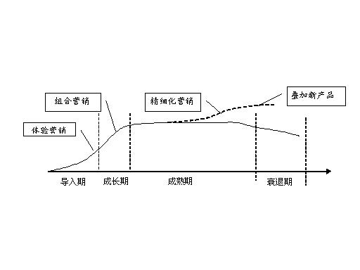 漏話業(yè)務(wù)是對(duì)現(xiàn)有基礎(chǔ)電信業(yè)務(wù)的延伸和補(bǔ)充,是建立在基礎(chǔ)通話服務(wù)基礎(chǔ)上的功能型增值業(yè)務(wù),在業(yè)務(wù)推廣中,應(yīng)根據(jù)業(yè)務(wù)的不同的發(fā)展階段,分別在業(yè)務(wù)的導(dǎo)入期、成長(zhǎng)期、發(fā)展期和衰退期采取不同的營銷手段和措施,如下圖所示。