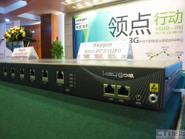 據(jù)了解,此次演示是基于以東進(jìn)Keygoe多媒體交換機(jī)為主體的平臺(tái),東進(jìn)Keygoe多媒體交換機(jī)系列產(chǎn)品提供融合、開(kāi)放、靈活和高性能的多業(yè)務(wù)承載平臺(tái),可與3G網(wǎng)絡(luò)完全融合。此外在現(xiàn)場(chǎng),Keygoe