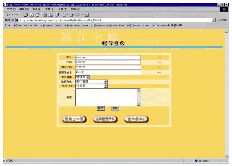 帳號系統(tǒng)主要是為適應(yīng)一個分銷商內(nèi)部會有多個不同等級的人使用這個系統(tǒng)。對于分銷商而言,它可以建立多個帳號,并為每個帳號分配不同的權(quán)限,以及每個帳號可以對應(yīng)管理不同下屬企業(yè)(參看圖5和圖6)。還可以為不同的帳號提供不同的進入頁面,使得用戶使用更加方便。