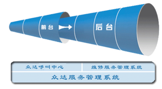 眾達(dá)客服管理系統(tǒng)分為呼叫中心系統(tǒng)和維修服務(wù)管理系統(tǒng)兩部分,呼叫中心系統(tǒng)主要負(fù)責(zé)電話接入,對(duì)話務(wù)員接聽(tīng)電話的全過(guò)程進(jìn)行管理、記錄、統(tǒng)計(jì)以及實(shí)現(xiàn)自動(dòng)語(yǔ)音應(yīng)答、自動(dòng)呼叫分配等智能功能;維修服務(wù)管理系統(tǒng)(B/S結(jié)構(gòu))主要負(fù)責(zé)記錄通過(guò)"呼叫中心"得到的客戶資料,跟蹤處理維修服務(wù)流程,記錄和統(tǒng)計(jì)服務(wù)數(shù)據(jù)。
