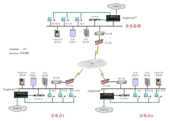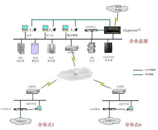 各個分布點(diǎn)的呼入和呼出都直接通過當(dāng)?shù)赝ㄐ欧⻊?wù)商,既保證了語音服務(wù)的質(zhì)量,又減少了系統(tǒng)的通話費(fèi)用。