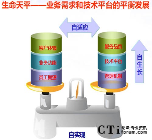 “生命天平”所體現(xiàn)的聯(lián)絡(luò)中心運(yùn)營管理是一個動態(tài)持續(xù)的過程,客戶體驗、業(yè)務(wù)功能和員工期望是不斷變化的,這就要求平臺要具有生命力,要不斷滿足客戶和業(yè)務(wù)新的需求,能夠主動的根據(jù)客戶體驗提升服務(wù)品質(zhì),跟隨業(yè)務(wù)功能變化提升技術(shù)平臺,結(jié)合員工期望,完善和改進(jìn)管理機(jī)制。使聯(lián)絡(luò)中心始終處于自生長、自適應(yīng)、自實現(xiàn)的平衡調(diào)節(jié)過程中。
