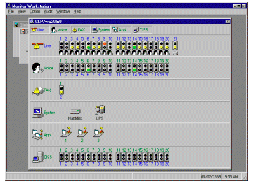 VoiceMaster的Monitor Workstation是一個(gè)為提供即時(shí)系統(tǒng)功能和動(dòng)態(tài)信息而設(shè)計(jì)的通用工具程序。監(jiān)控工作站(Monitor Workstation)顯示系統(tǒng)組件和系統(tǒng)操作特性、通訊線路、主控計(jì)算機(jī)的連接情況、不間斷電源(UPS)及磁盤(pán)容量等各自實(shí)時(shí)狀態(tài)的圖形簡(jiǎn)報(bào)。當(dāng)有問(wèn)題或出錯(cuò)時(shí)產(chǎn)生報(bào)警及警告信息來(lái)通知系統(tǒng)管理員。