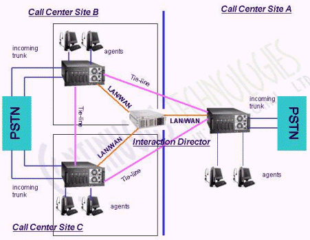 Interaction Director的功能比Interaction Multi-Site還要強(qiáng)大的多,不但支持Interaction Multi-Site的具有的功能外,還支持更大規(guī)模的分布式系統(tǒng)、呼叫前和呼叫后路由(呼叫前路由采用SS7信令,需要電信運(yùn)營(yíng)商的支持)以及真正的網(wǎng)絡(luò)排隊(duì)機(jī)(Network ACD)等。Interaction Director通常安裝在一臺(tái)單獨(dú)的服務(wù)器上,用來(lái)決定最佳分布點(diǎn)的系統(tǒng)處理來(lái)電。Interaction Director可以實(shí)時(shí)監(jiān)控各個(gè)分布點(diǎn)的系統(tǒng)負(fù)載,坐席、技能、隊(duì)列等狀態(tài)。采用Interaction Director可以方便的實(shí)現(xiàn)分布式呼叫中心系統(tǒng)的負(fù)載均衡和災(zāi)難備份。舉例來(lái)說(shuō),在周末話(huà)務(wù)量較小的情況下,為節(jié)省資源和運(yùn)營(yíng)成本,可以將北京中心的所有來(lái)電路由至上海中心處理;又如,上海中心發(fā)生故障,可以將所有來(lái)電路由至北京中心處理。