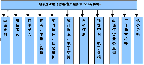 隨著國內(nèi)煙草專賣體制市場化進(jìn)程的不斷推進(jìn),在煙草全行業(yè)建立以"電話訂貨、網(wǎng)上配貨、電子結(jié)算、現(xiàn)代物流"為基本特征的現(xiàn)代流通體制已經(jīng)成為必然的選擇,實現(xiàn)煙草專賣體制下舊的和落后的營銷體制向現(xiàn)代營銷體制的轉(zhuǎn)變。煙草企業(yè)建立電話訪銷/客戶服務(wù)系統(tǒng)的目標(biāo)是最大程度地提高客戶的滿意度,其核心是實現(xiàn)高水平的建設(shè)水平,提高企業(yè)對市場的控制力,最終保證企業(yè)擁有持續(xù)的競爭力和良好的贏利。