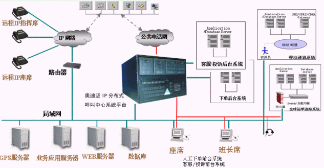 物流是商業(yè)發(fā)達(dá)社會(huì)必然高速度發(fā)展的產(chǎn)業(yè)之一,不僅僅要求物品從供應(yīng)地向接收地的實(shí)體流動(dòng)過程,同時(shí)也是信息流和資金流的過程,根據(jù)實(shí)際不同的需要,需要運(yùn)輸、儲(chǔ)存、裝卸、搬運(yùn)、包裝、流通加工、配送、信息處理等基本過程有機(jī)結(jié)合,從而完成用最短的時(shí)間合理將物品運(yùn)向目的地。在整個(gè)物流過程中,涉及到的各個(gè)環(huán)節(jié),分散在不同的區(qū)域,需要一個(gè)信息平臺(tái)將整個(gè)物流環(huán)節(jié)聯(lián)接起來,及時(shí)把握客戶的定貨需求,進(jìn)行車輛的調(diào)度管理,庫存管理以及票據(jù)管理等,力求實(shí)現(xiàn)用最少的庫存,最短的運(yùn)輸距離滿足客戶的需求,F(xiàn)代物流企業(yè)與以往的物流企業(yè)不同,不僅僅局限于物流中的某一個(gè)環(huán)節(jié),而是普遍采用了信息化管理技術(shù),如ERP、物流管理(LM)、SCM等應(yīng)用系統(tǒng),并通過Internet將遍布在各地的物流中心與客戶連接起來,形成一個(gè)高效率的物流配送網(wǎng)絡(luò)。建立在奧迪堅(jiān)IPDCC的分布式呼叫中心平臺(tái)上的光大科技物流客戶服務(wù)系統(tǒng),以IP技術(shù)為核心在網(wǎng)絡(luò)上構(gòu)建一個(gè)語音和數(shù)據(jù)的統(tǒng)一平臺(tái),在一臺(tái)服務(wù)器上融合了CTI、PBX、ACD、VoIP、Voice、Mail,Recording,Call