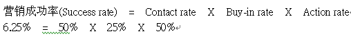 在金融業(yè)零售銀行和信用卡里面,還有一個(gè)很重要的催收業(yè)務(wù),也是應(yīng)用電話營(yíng)銷的觀念以大量外撥作為減少壞帳的有效工具。他的目標(biāo)客戶就是到期欠款未還的人,產(chǎn)品就是降低各個(gè)壞帳區(qū)間的比率,單純的逾期1-30天用自動(dòng)外撥(又叫預(yù)測(cè)式外撥),逾期30天以上用手動(dòng)外撥(又叫預(yù)覽是外撥),催收人員的收帳目標(biāo)從部門(mén)目標(biāo)反推得到,ABC也一樣的追蹤(B變成Willing