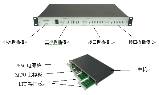 見上圖,DAS30為模塊化插板結(jié)構(gòu),由主機、1塊MCU主控板、1或2塊接口板、和1塊電源板組成。主機有4個插槽,從左到右分別是電源板、MCU主控板、接口板插槽1、接口板插槽2。