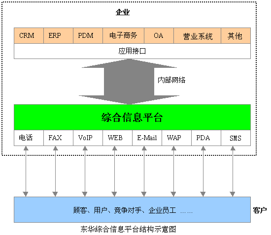 東華集團綜合信息平臺不但能完善服務(wù)質(zhì)量、提高客戶滿意度;可以降低服務(wù)及業(yè)務(wù)處理運營成本,提高勞動生產(chǎn)率,充分利用資源;更能適應(yīng)業(yè)務(wù)的迅猛發(fā)展,擴展業(yè)務(wù)處理能力,增加業(yè)務(wù)收入,是企業(yè)進行客戶關(guān)系管理的完全解決方案,是企業(yè)構(gòu)建CRM的基礎(chǔ)。