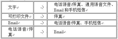 支持 Email內(nèi)容到電話語(yǔ)音/傳真、手機(jī)短信消息轉(zhuǎn)換(例:有聲郵件)