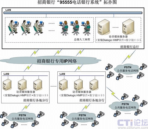 招商銀行“95555”電話銀行系統(tǒng)拓撲圖