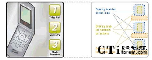 互作用提出了更進一步的挑戰(zhàn)。能夠使用戶訪問多個 TV 頻道以及獲得其他服務(wù)的視頻門戶,是一個很好的研究實例。視 頻門戶顯示了基于每個用戶活動、訪問權(quán)限、服務(wù)描述等的服務(wù)菜單。一般來說,菜單是有限列表,用戶通過在手持終端 按下相應(yīng)的鍵來進行選擇 (圖2.通過示意圖說明了動態(tài)菜單的映射方法)。為了創(chuàng)建菜單,應(yīng)用程序控制了基礎(chǔ)架構(gòu),而該 基礎(chǔ)架構(gòu)動態(tài)地生成了有限列表,并在當前的視頻流頂端顯示為一個靜態(tài)覆蓋圖。相同技術(shù)可用于顯示基于用戶活動或位 置進行品牌和廣告宣傳的 logo 或文本。