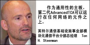 對于MCP互操作性設(shè)計指南,Ton H. Steenman表示這是英特爾為全行業(yè)編寫的AdvancedTCA標準。因為如果在AdvancedTCA產(chǎn)品中出現(xiàn)很多個子標準或者旁支標準,就無法保證在卡和板中構(gòu)建模塊良好的互操作性。目前,這個標準仍在演化之中,英特爾還將會推出下一版的設(shè)計指南,使標準變得越來越緊密,從而確;ゲ僮餍,否則電信設(shè)備制造商也無法從中受益。