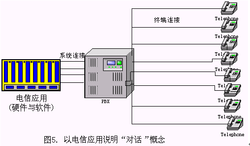 一般來(lái)說(shuō),一個(gè)基于電話語(yǔ)音識(shí)別的對(duì)話系統(tǒng)(如圖5所示),一般由識(shí)別服務(wù)器、應(yīng)用服務(wù)器、電話交換機(jī)、智能交換機(jī)設(shè)備、 IVR設(shè)備等設(shè)備組成,電話交換機(jī)與成千上萬(wàn)個(gè)電話終端通過各種交換設(shè)備相連接,電信應(yīng)用軟件在這些硬件的支持下提供各種服務(wù),如:1860查詢服務(wù)等。此時(shí),電信應(yīng)用開通的線數(shù)視系統(tǒng)的業(yè)務(wù)需求而定,一般總是大大小于終端連接的總數(shù)。系統(tǒng)連接數(shù)與終端連接數(shù)常常是1:1000或者1:10000的級(jí)別。"一路對(duì)話"是指物理上的一條線路,對(duì)于上述的電信應(yīng)用,電信開通的每一條線路都是一路對(duì)話。