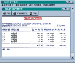 - 提供單獨、全部或自定范圍之分機(jī)電 話帳、部門電話帳之電話明細(xì)報表。
