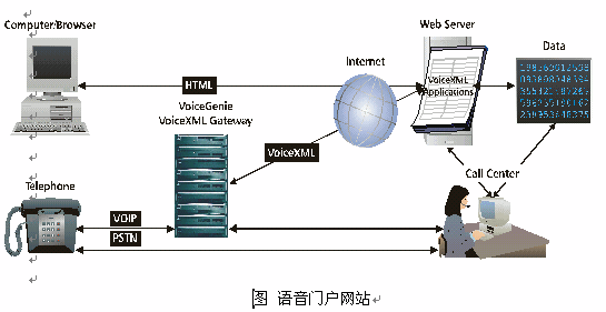VoiceSoft先進的技術(shù)可以將傳統(tǒng)的電力公司的網(wǎng)站改造為語音門戶網(wǎng)站,用戶既可以通過傳統(tǒng)的internet方式瀏覽電力公司網(wǎng)站,也可以通過電話撥入的方式獲得網(wǎng)站上的信息,使用網(wǎng)站上的功能,利用ASP的技術(shù),實現(xiàn)語音服務數(shù)據(jù)和網(wǎng)上瀏覽數(shù)據(jù)同步更新。