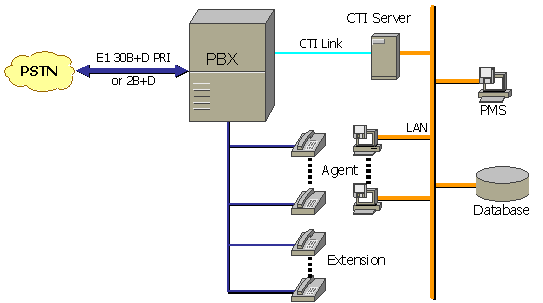 - CTI Server:中心通信模塊,負責計算機系統(tǒng)同PBX之間進行通信,通信協(xié)議轉(zhuǎn)換。