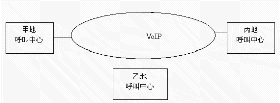 PRI,ISDN BRI,E&M或VoIP 等接口實現(xiàn),每條話路只須8Kbit/s帶寬,并支持網(wǎng)絡(luò)優(yōu)化路由及D通道座席預(yù)約,大大降低網(wǎng)絡(luò)連接費用,提高運行效率。目前主流的方式是采用VoIP技術(shù)。如下圖所示: