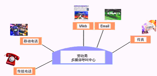 勞動局多媒體呼叫中心系統(tǒng)支持的通訊方式包括:電話、傳真、手機、電子郵件、因特網(wǎng)服務(wù)、短消息等多種通訊媒介。