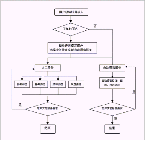 實(shí)現(xiàn)呼叫轉(zhuǎn)接分發(fā)功能:用戶撥打公共呼叫中心平臺的特別服務(wù)號碼,通過IVR語音流程的引導(dǎo)或人工的區(qū)分,根據(jù)用戶的需求將其轉(zhuǎn)接分發(fā)到專業(yè)的呼叫中心上去。如將打入公共呼叫中心平臺需要進(jìn)行消費(fèi)投訴的電話轉(zhuǎn)接分發(fā)到工商12315熱線。從而從根本上解決由于各呼叫中心之間完全獨(dú)立,市民要記住如此多的號碼幾乎是不可能的,一遇到需要求助的情況還是會有求助無門的感覺,不能真正發(fā)揮呼叫中心應(yīng)由的作用的問題。