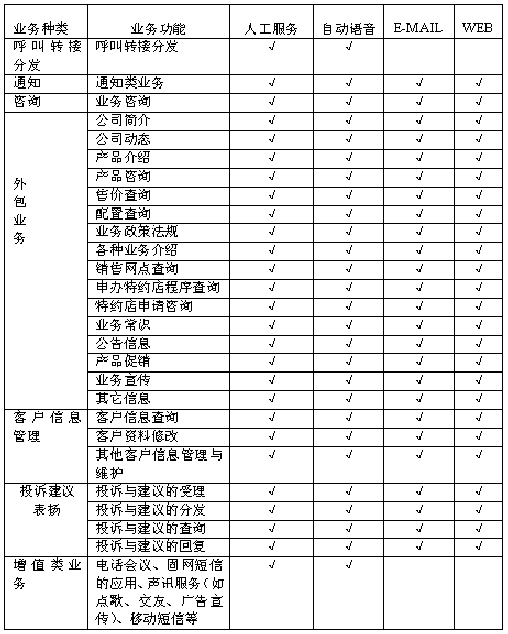 通知類業(yè)務(wù):對某些特定的對象通過自動呼出或人工呼出進(jìn)行通知,實(shí)現(xiàn)政策法規(guī)、專題的通知,方式可以是電話、傳真、電子郵件、短消息、網(wǎng)站等。