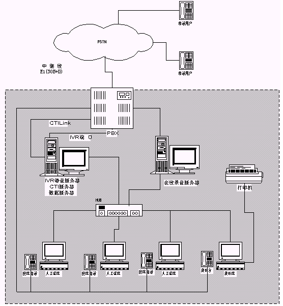 該呼叫中心平臺網(wǎng)絡(luò)拓?fù)浣Y(jié)構(gòu)如下: