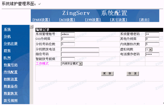 一體化交換機ZINGSWITCH的核心研發(fā)于美國,嚴(yán)格遵循國際標(biāo)準(zhǔn),將PABX(電話交換)、IVR(自動語音回復(fù))、ACD(自動話務(wù)路由)、CTI、VoIP、錄音和傳真等所有功能模塊融于一臺專用一體化交換機中,這種基于先進技術(shù)的高集成度平臺模式正是構(gòu)建現(xiàn)代呼叫中心的主流模式。一體化交換機ZINGSWITCH最顯著的優(yōu)勢就是突破了交換機方案與板卡方案的技術(shù)限制,充分吸取兩者的優(yōu)點,避開兩者的缺點。一體化交換機ZINGSWITCH確立的兩項標(biāo)準(zhǔn)是其他一體化交換機廠商難以達到的:一是采用嵌入式實時LINUX操作系統(tǒng),二是系統(tǒng)軟件全部封裝在Flash Disk固態(tài)電子盤中。這兩項標(biāo)準(zhǔn)完全向傳統(tǒng)程控交換機看齊,可以說,ZingServ交換機的性能、可靠性、安全性與傳統(tǒng)程控交換機已難分伯仲。
