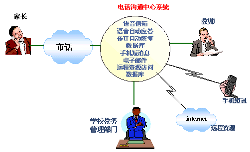 為此,很多學(xué)校都建立了自己的網(wǎng)站來作為對(duì)外宣傳和溝通的窗口,同時(shí),不少學(xué)校還建立了校園網(wǎng),但僅僅通過INTERNET來獲取相應(yīng)的學(xué)生信息和學(xué)校信息是不夠的,畢竟不是每個(gè)家長(zhǎng)都上網(wǎng)的,就算上網(wǎng)也只是偶爾,不能達(dá)到和學(xué)校經(jīng)常溝通的效果,尤其是在不很發(fā)達(dá)的地區(qū)這種現(xiàn)象尤為明顯。因此學(xué)校與家長(zhǎng)的溝通必須建立在一種十分普及的通訊方式基礎(chǔ)上,而當(dāng)前最為普及的通訊方式莫過于電話了。