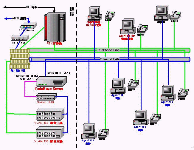 - 系統(tǒng)主要包括二大主機并由網絡聯機(TCP/IP協議)作為彼此與遠程的溝通橋梁。一是錄音接口主機(VLAN-164)具備模擬輸入音源的匹配接口、音源數字化、網絡聯機輸出。一是數據庫服務器(DataBase
