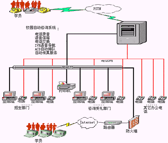 自動語音應答系統是計算機和電話語音板卡的結合體,在相關軟件的控制下,可代替人工自動接聽學員電話。自動語音應答系統的主要功能包括: