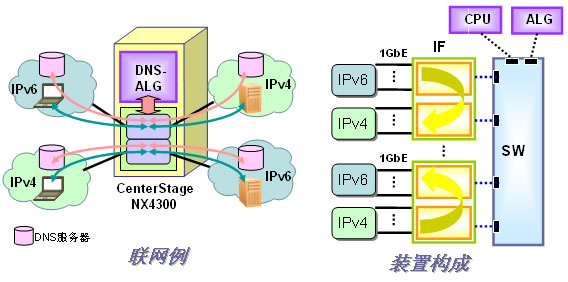 可以在ALG 刀片上搭載將DNS咨詢進行IPv6-IPv4轉換的ALG功能。與轉換服務器刀片協(xié)作可以實現(xiàn)IPv6與IPv4的雙方向通信。