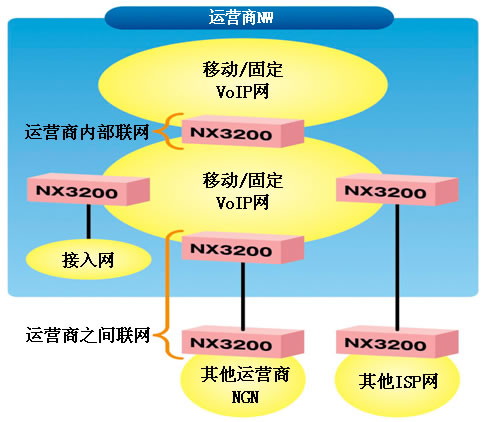 NX3200(以下簡(jiǎn)稱「NX3200」)」上,內(nèi)置了行業(yè)首例運(yùn)營(yíng)商級(jí)SIP-ALG(注2)轉(zhuǎn)換功能。內(nèi)置本功能后,可以吸收不同通信運(yùn)營(yíng)商的通信方式差異,實(shí)現(xiàn)無(wú)縫相互聯(lián)網(wǎng)。這樣一來(lái),通過(guò)「NX3200」可以讓提供多種多樣服務(wù)及擁有不同網(wǎng)絡(luò)環(huán)境的各個(gè)通信運(yùn)營(yíng)商實(shí)現(xiàn)相互聯(lián)網(wǎng)。本產(chǎn)品即日起開始銷往市場(chǎng)。