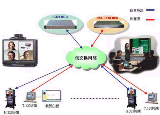 DSS的帶外方式可以單獨運行,召開數(shù)據(jù)會議,可以與會議系統(tǒng)進行融合,例如與遠程教育系統(tǒng)進行結(jié)合,提供帶控制的數(shù)據(jù)會議功能。由于DSS提供主席控制和嚴格的帶寬控制,所以完全可以與其他各種IP業(yè)務(wù)同時開展。