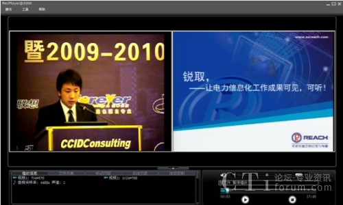 本次論壇分為電力企業(yè)信息化高峰論壇、電力企業(yè)“十二五”信息化藍(lán)圖展望、電力信息化標(biāo)桿研究及評選結(jié)果發(fā)布、研討國際電力信息化標(biāo)桿發(fā)展方向、研討“智能”落地打造中國智能特色五大議題。深圳銳取受主辦方委托為論壇提供全程錄播服務(wù)。相比傳統(tǒng)攝像機(jī)記錄會議的方式,銳取多媒體錄播系統(tǒng)實(shí)現(xiàn)了會議現(xiàn)場視頻與講演者PPT同步完整記錄,新穎的記錄方式受到了主辦單位和與會者的好評。