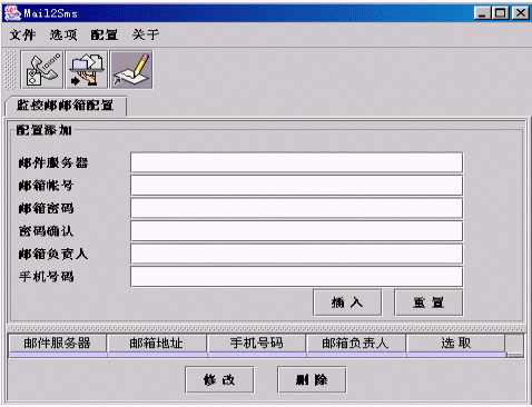 按鈕進入配置監(jiān)控郵箱窗口: