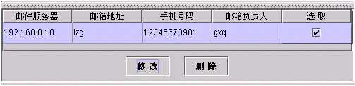 ·修改監(jiān)控郵箱配置時,首先點擊'選取'項中的小方框,選中該列然后雙擊要修改項的內(nèi)容,修改完畢后按下Enter即回車鍵,再點擊修改按鈕