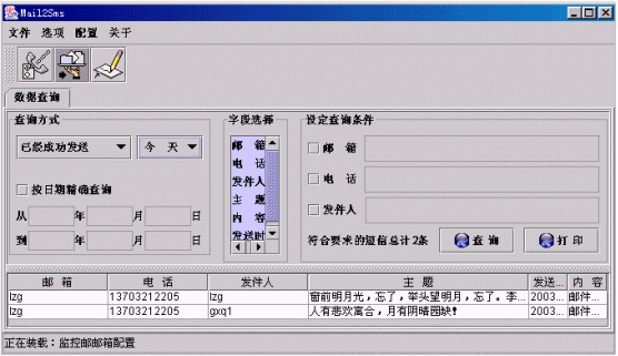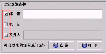·也可以通過給定查詢條件來查詢某項內(nèi)容,如針對某個郵箱、手機電話或發(fā)件人,方法是通過點擊左邊的小方框來選中,然后輸入相應內(nèi)容即可,如下圖: