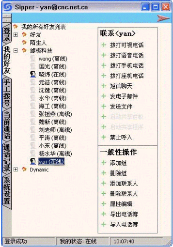 該軟件可以實現網上可視交談、電話會議、短信傳輸、文件傳輸等多種功能。
