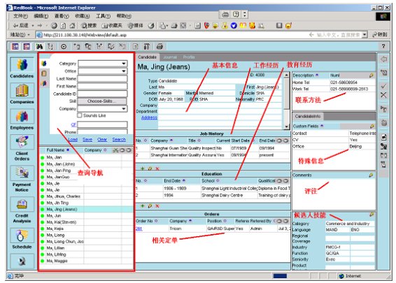 融博公司適應(yīng)市場(chǎng)需求,與著名的獵頭公司一起合作,結(jié)合CRM的理念和現(xiàn)有的軟件平臺(tái),開發(fā)出了融博獵頭業(yè)務(wù)管理系統(tǒng)。該系統(tǒng)具有自己獨(dú)特的優(yōu)勢(shì),比如擁有中英文兩種版本;使用WEB方式、具有跨地域信息共享;人力資源信息專業(yè)規(guī)范、覆蓋全面;系統(tǒng)操作簡(jiǎn)單、功能強(qiáng)大;配置靈活、可擴(kuò)展性強(qiáng);復(fù)雜的業(yè)務(wù)關(guān)聯(lián)性;以及生成各種業(yè)務(wù)報(bào)告和業(yè)務(wù)報(bào)表等。該系統(tǒng)采用了模塊化的設(shè)計(jì)方案,可以根據(jù)用戶的使用權(quán)限和業(yè)務(wù)內(nèi)容,配置不同的業(yè)務(wù)模塊。該系統(tǒng)的功能模塊包括了候選人管理、客戶管理、雇員管理、定單管理、活動(dòng)管理、績(jī)效管理、系統(tǒng)管理和報(bào)表管理等。