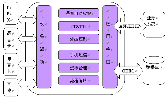 CTI服務(wù)器是整個(gè)系統(tǒng)的核心,通過內(nèi)置電話語音/傳真卡,接入PSTN電話網(wǎng)。該服務(wù)器可作為一個(gè)相對(duì)獨(dú)立的系統(tǒng)單獨(dú)運(yùn)行,也可以通過企業(yè)局域網(wǎng)與企業(yè)的業(yè)務(wù)系統(tǒng)連接。